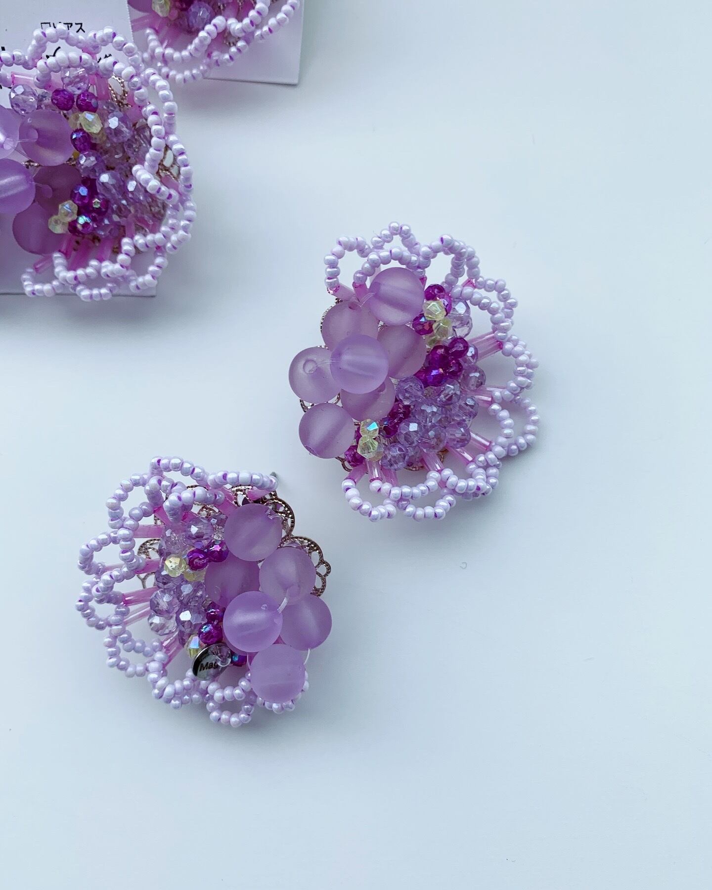 71032——miwaku—— ミワク—— フリルビーズピアスイヤリング——ピンク*パープル