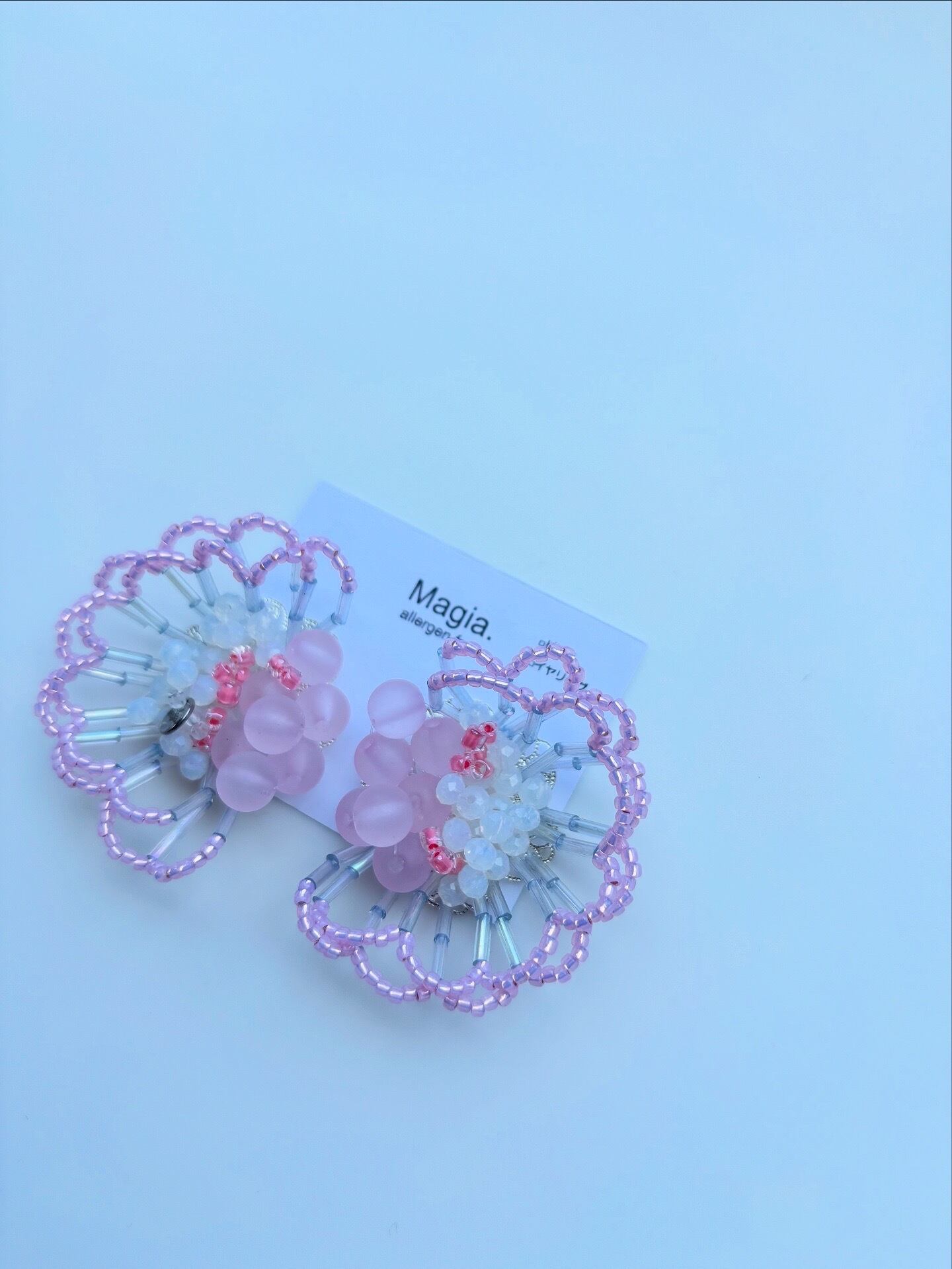 71040——miwaku—— ミワク—— フリルビーズピアスイヤリング——milky pink*c.l.blue