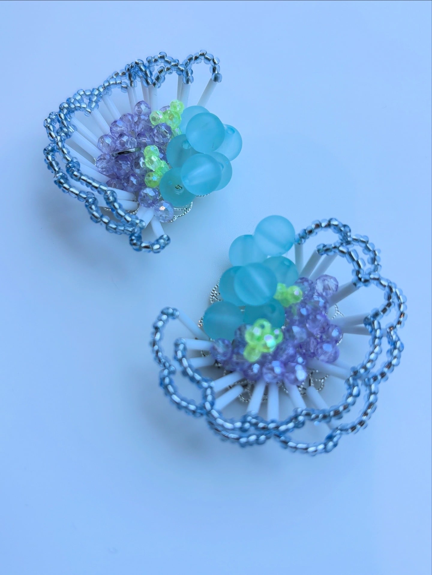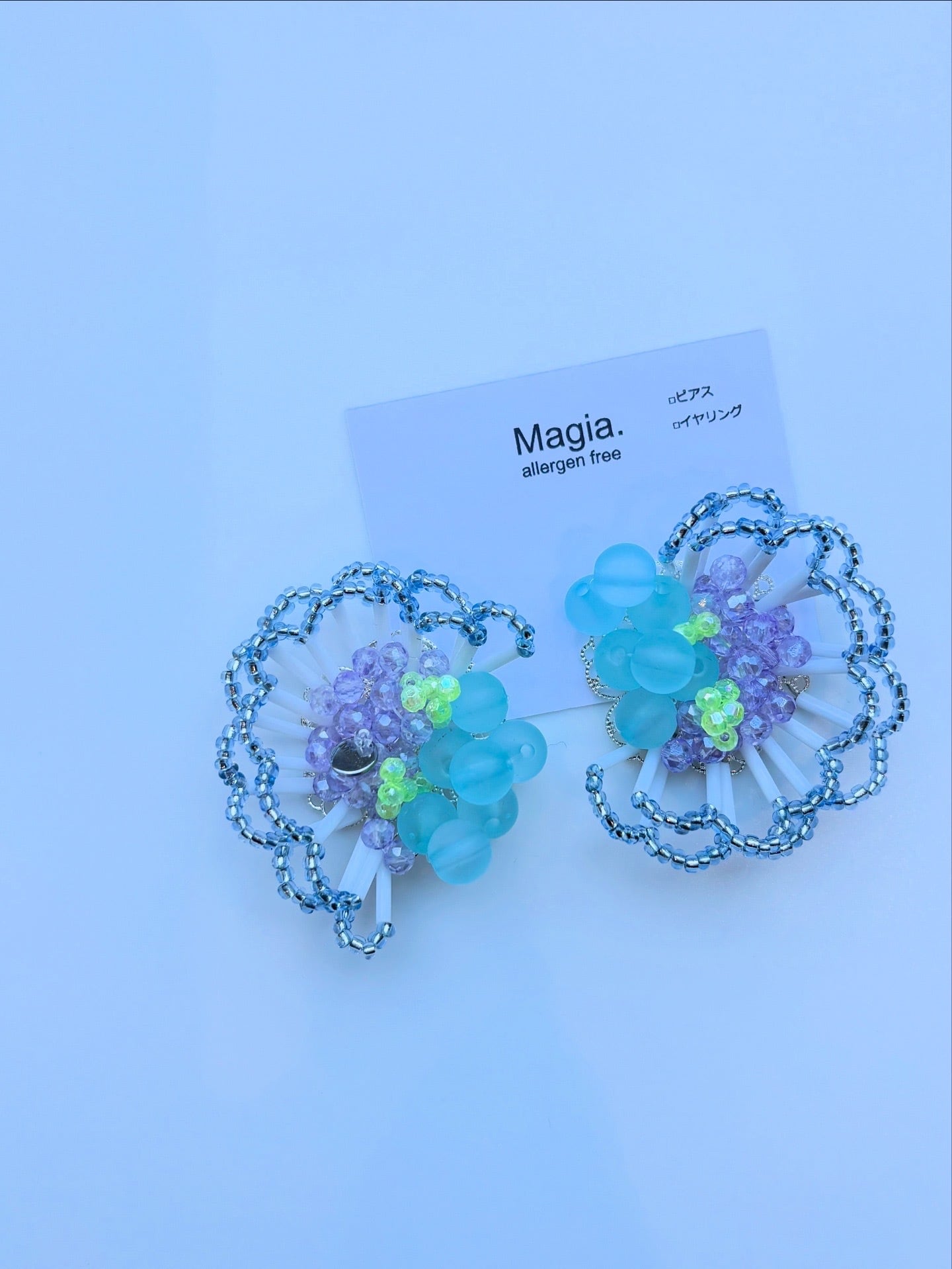 71034——miwaku—— ミワク—— フリルビーズピアスイヤリング——light blue*white*purple
