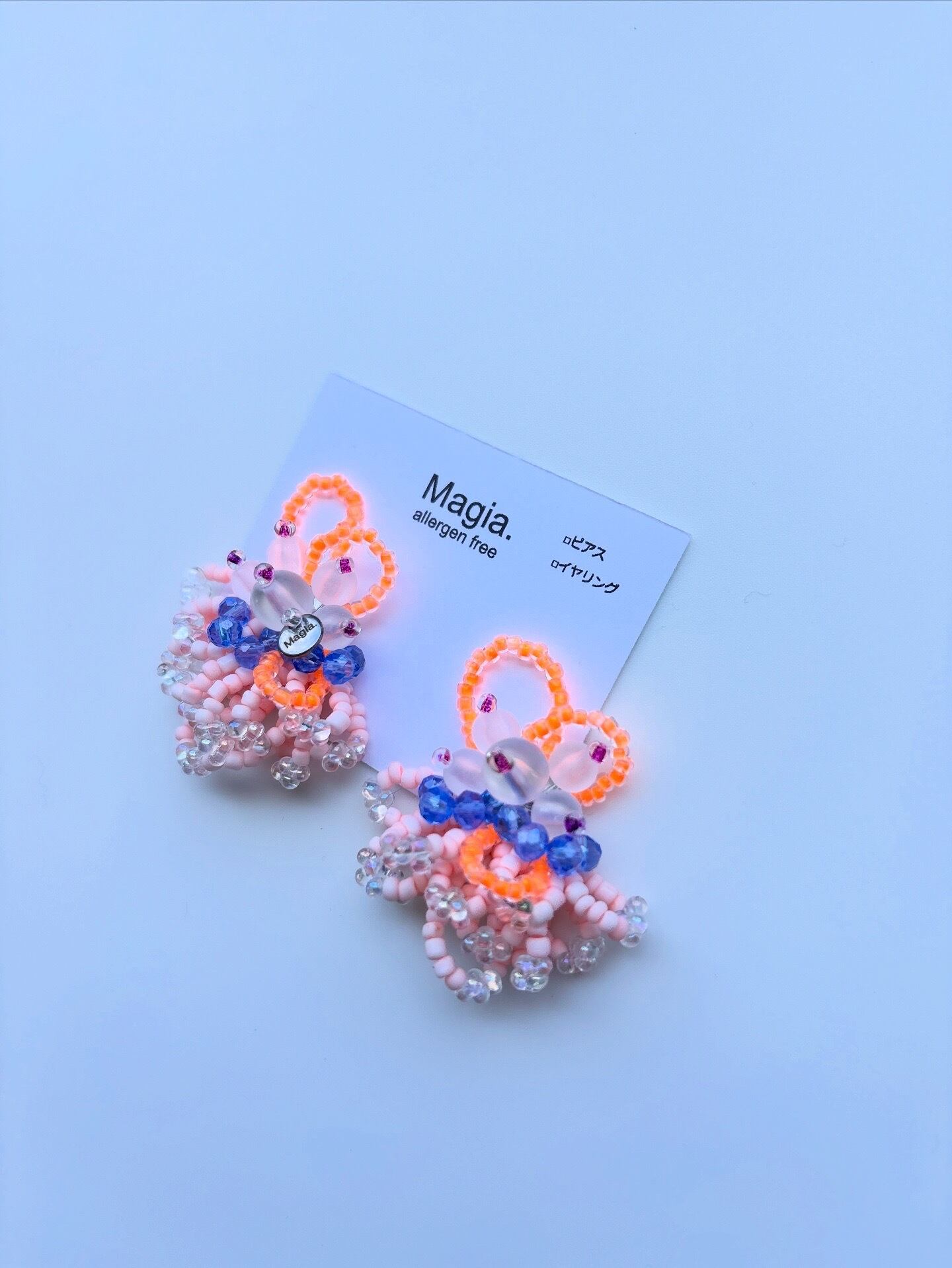75014——bambolina—— バンボリーナ—— ≪フリルビーズピアスイヤリング/frost orenge*clear blue*neon orenge