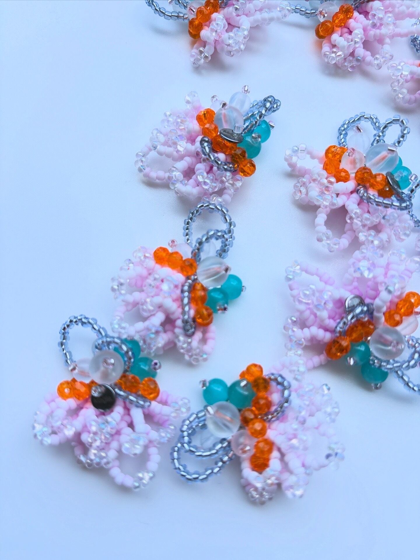 フリルとカラフルなビーズの組み合わせは、一つ一つ手作りで丁寧に仕上げています。細部にまでこだわったデザインでありながらも、軽やかなつけ心地が魅力。友人へのプレゼントや自分へのご褒美にも最適です。ぜひ、あなたのスタイルに取り入れて、個性を表現してみてください!