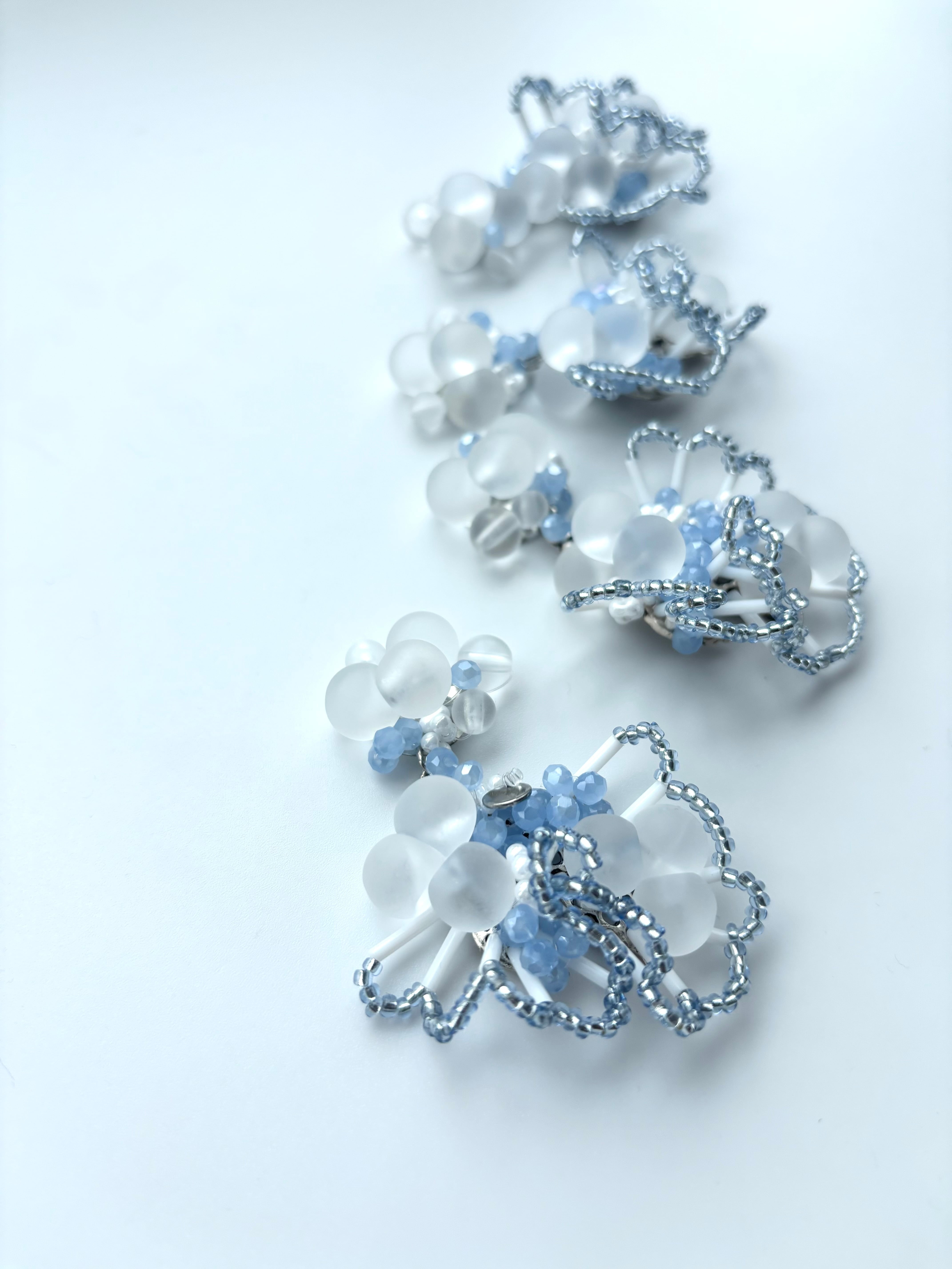 74100—— Adeyaka—— アデヤカ—— ≪フリルビーズピアスイヤリング/lightblue*white*lightblue≫