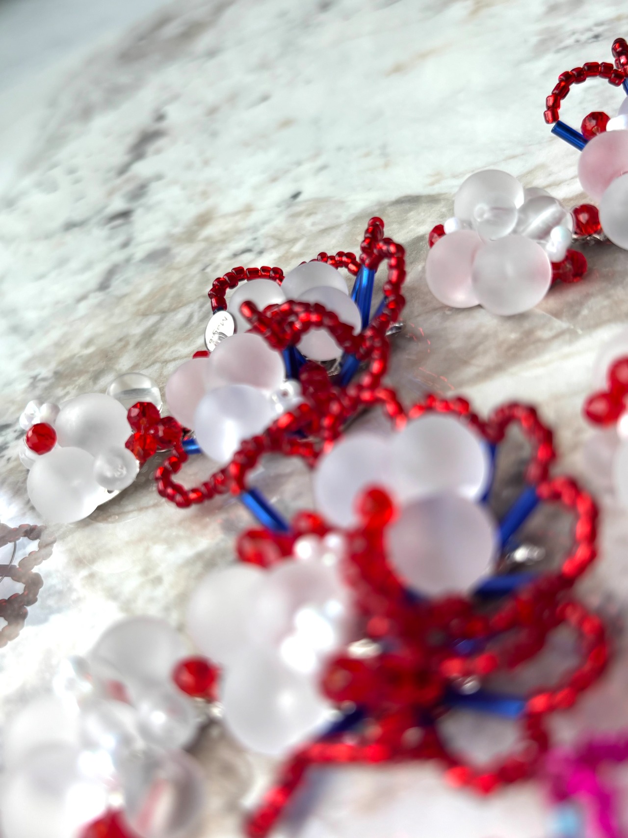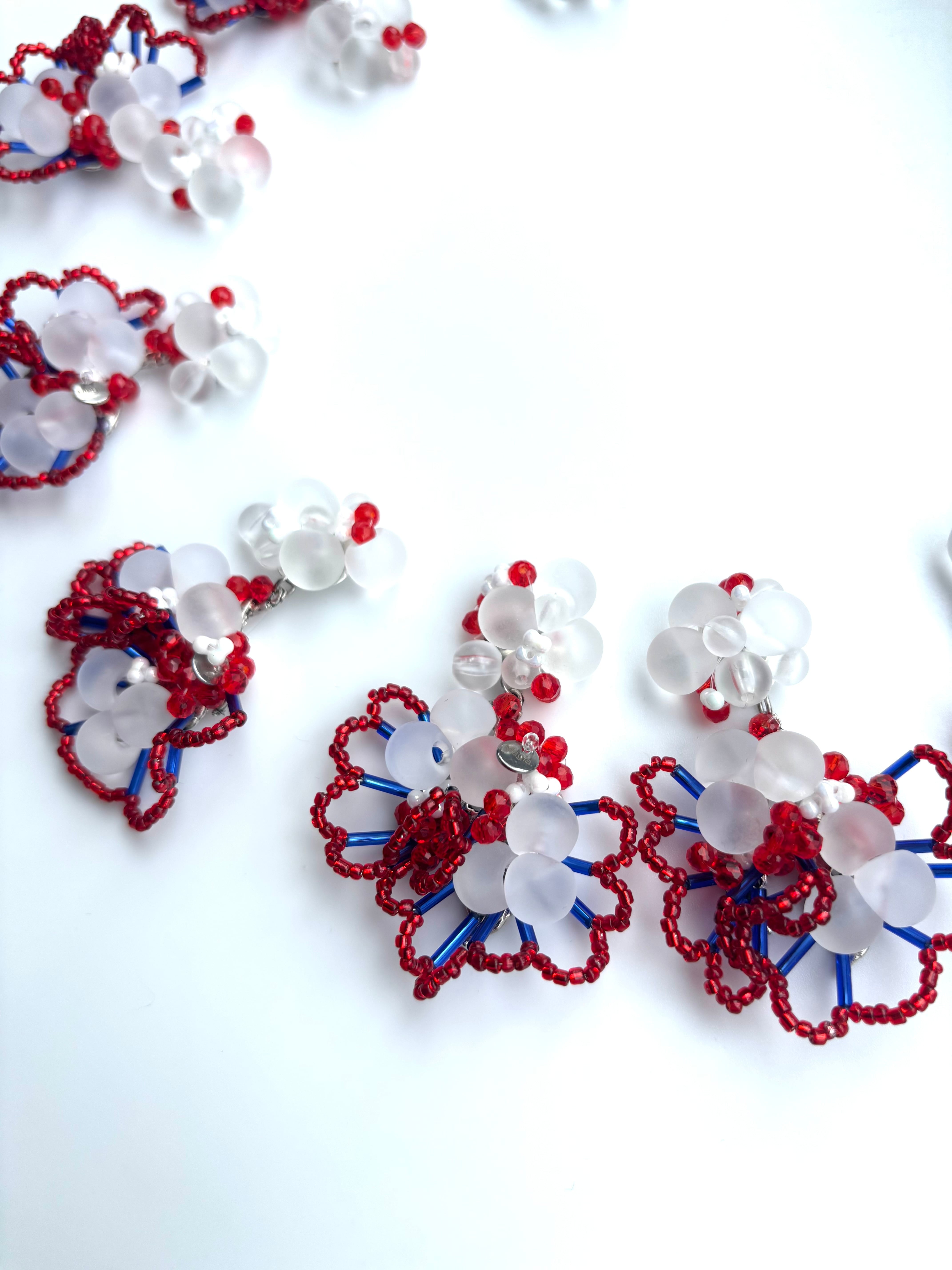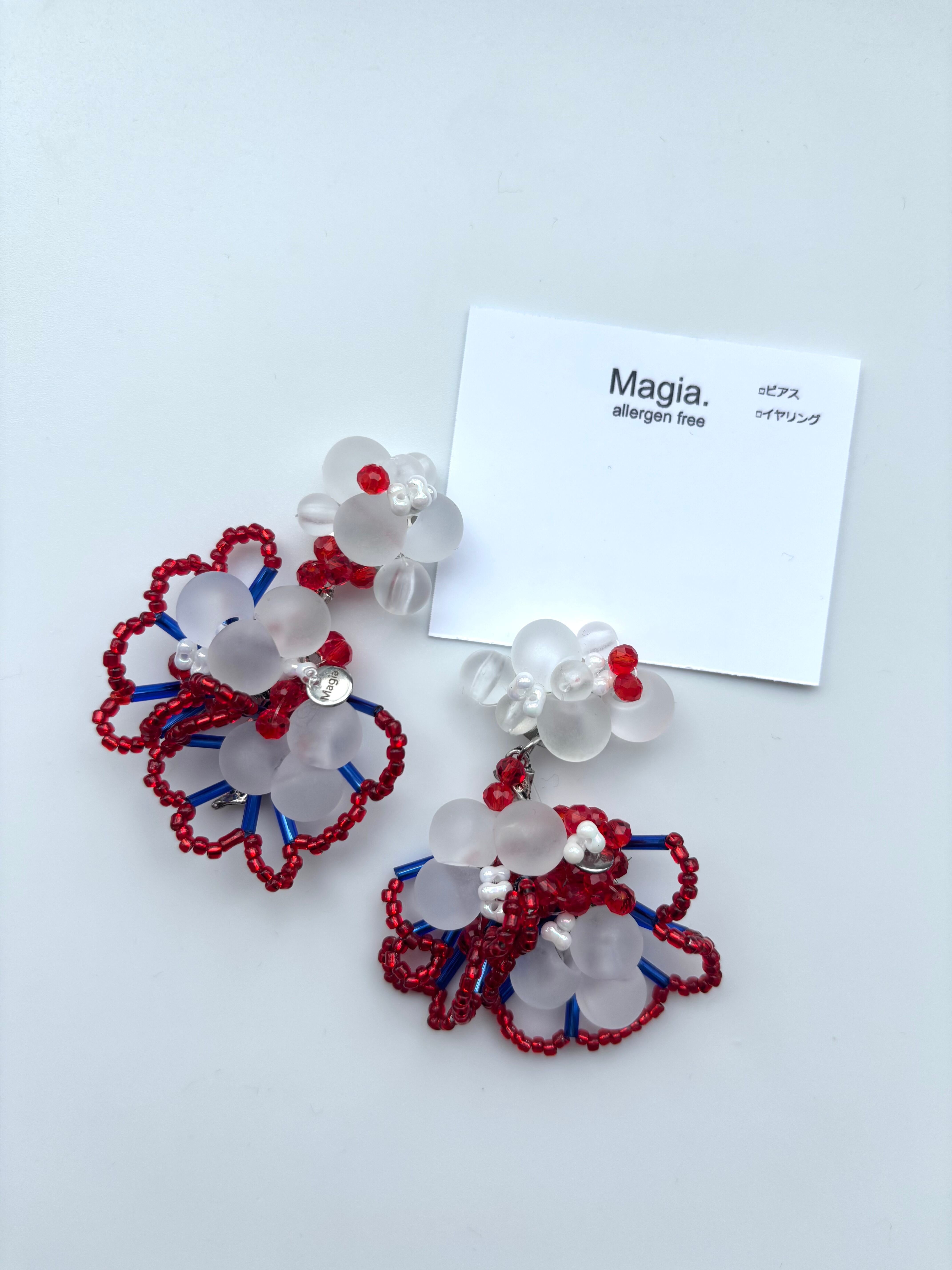 74102—— Adeyaka—— アデヤカ—— ≪フリルビーズピアスイヤリング/red*blue*clear red ≫