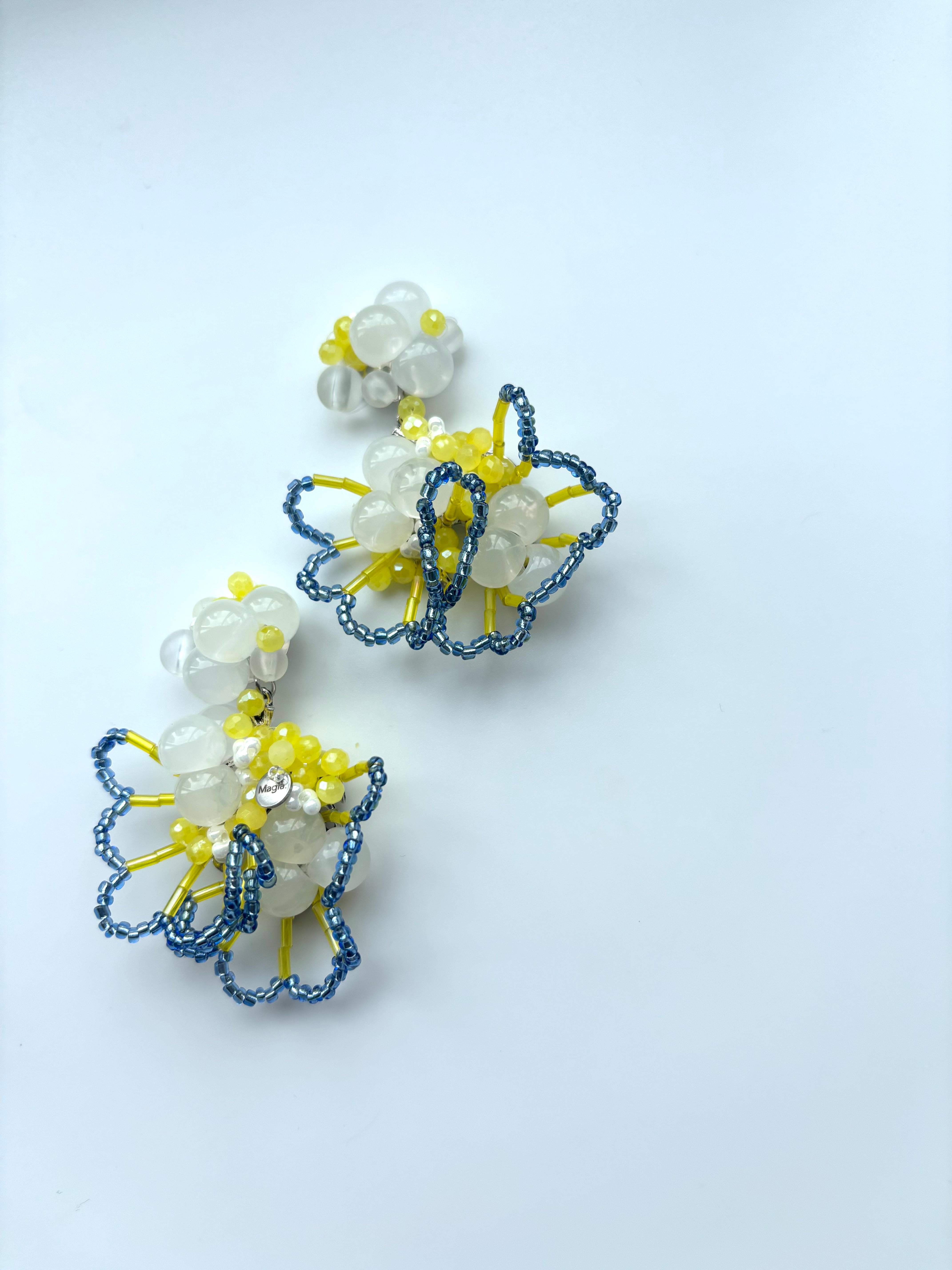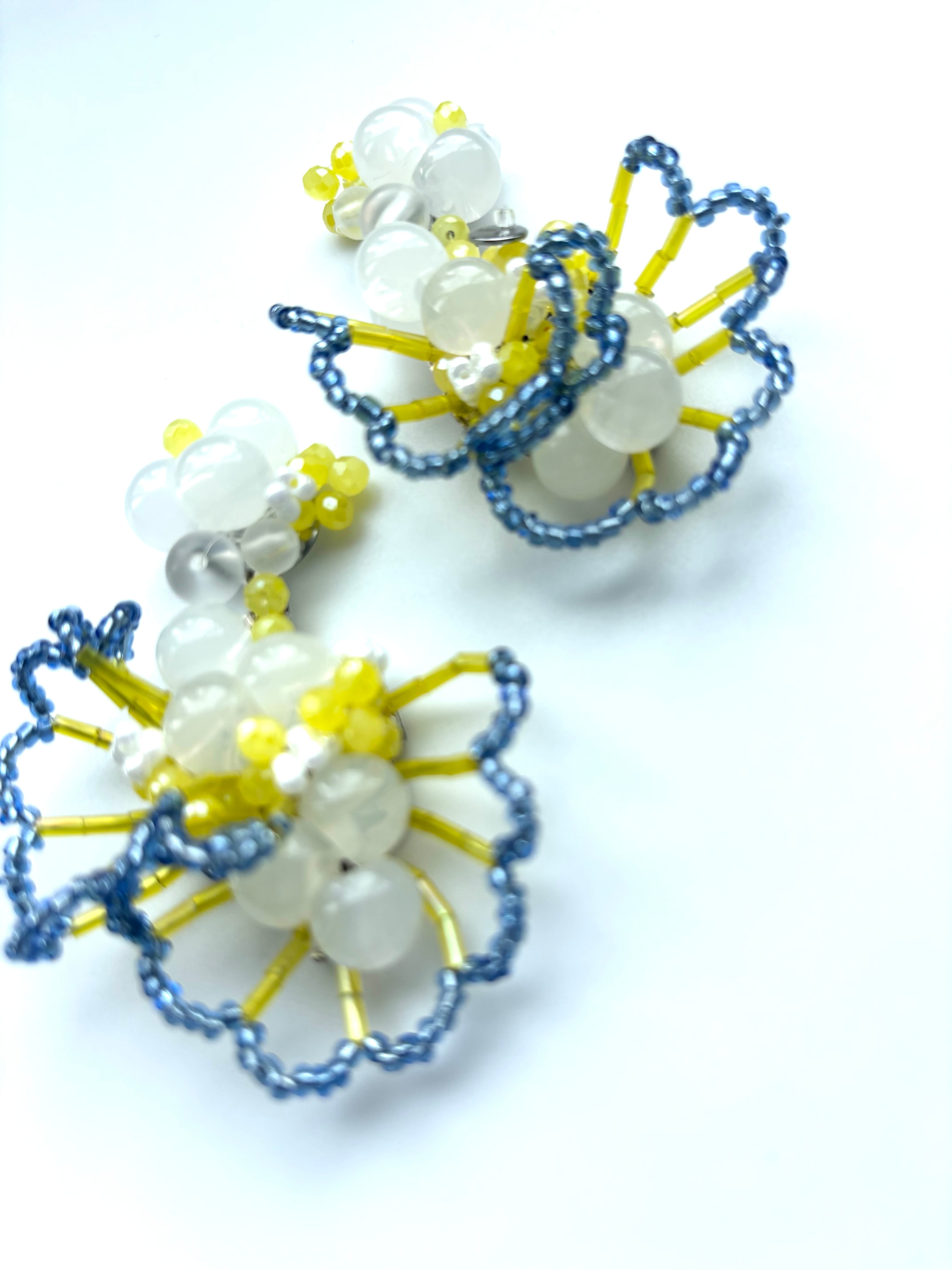74103—— Adeyaka—— アデヤカ—— ≪フリルビーズピアスイヤリング/clear blue*yellow*yellow ≫