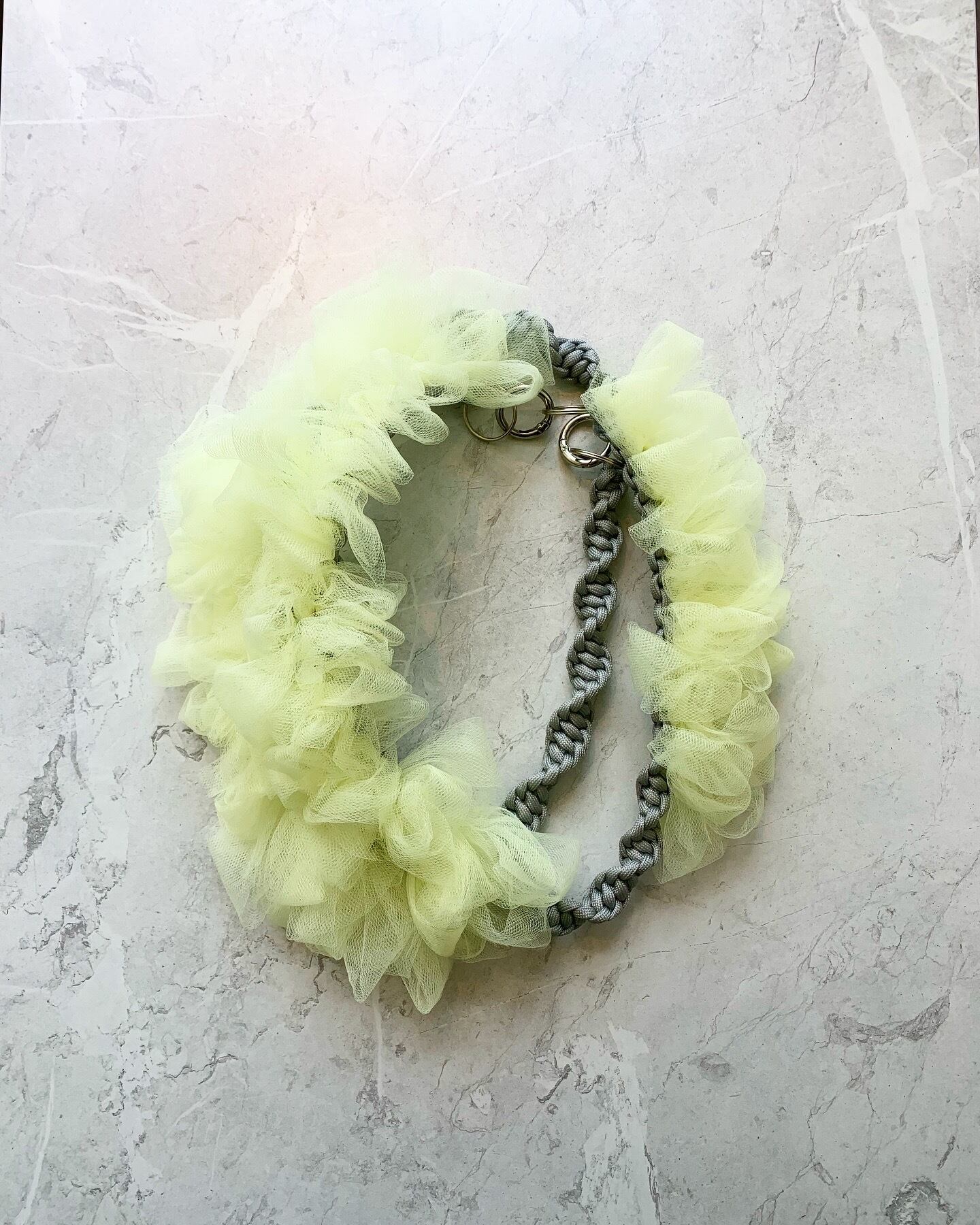 00114---tulle lace triple shoulder strap /light gray + pastel yellow [ a te]