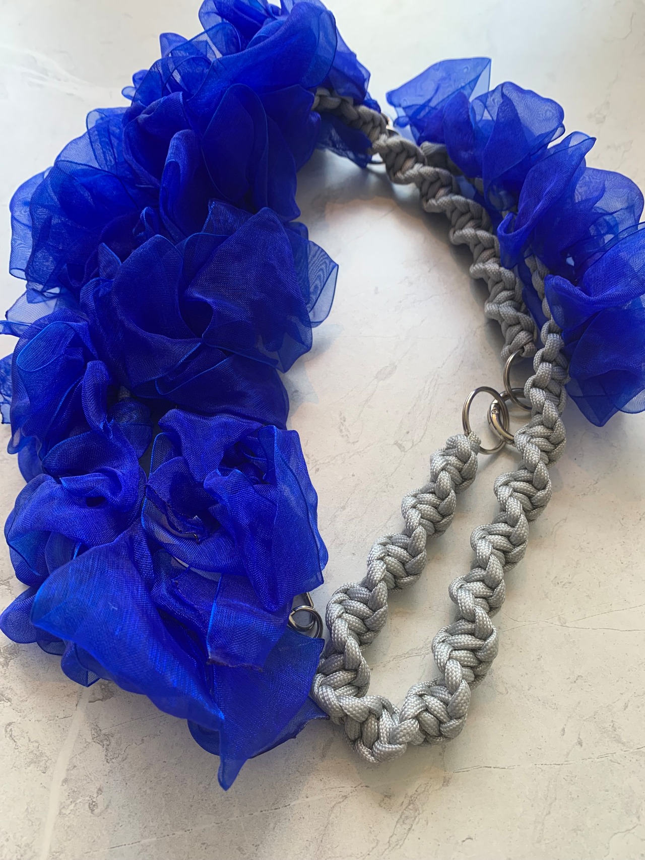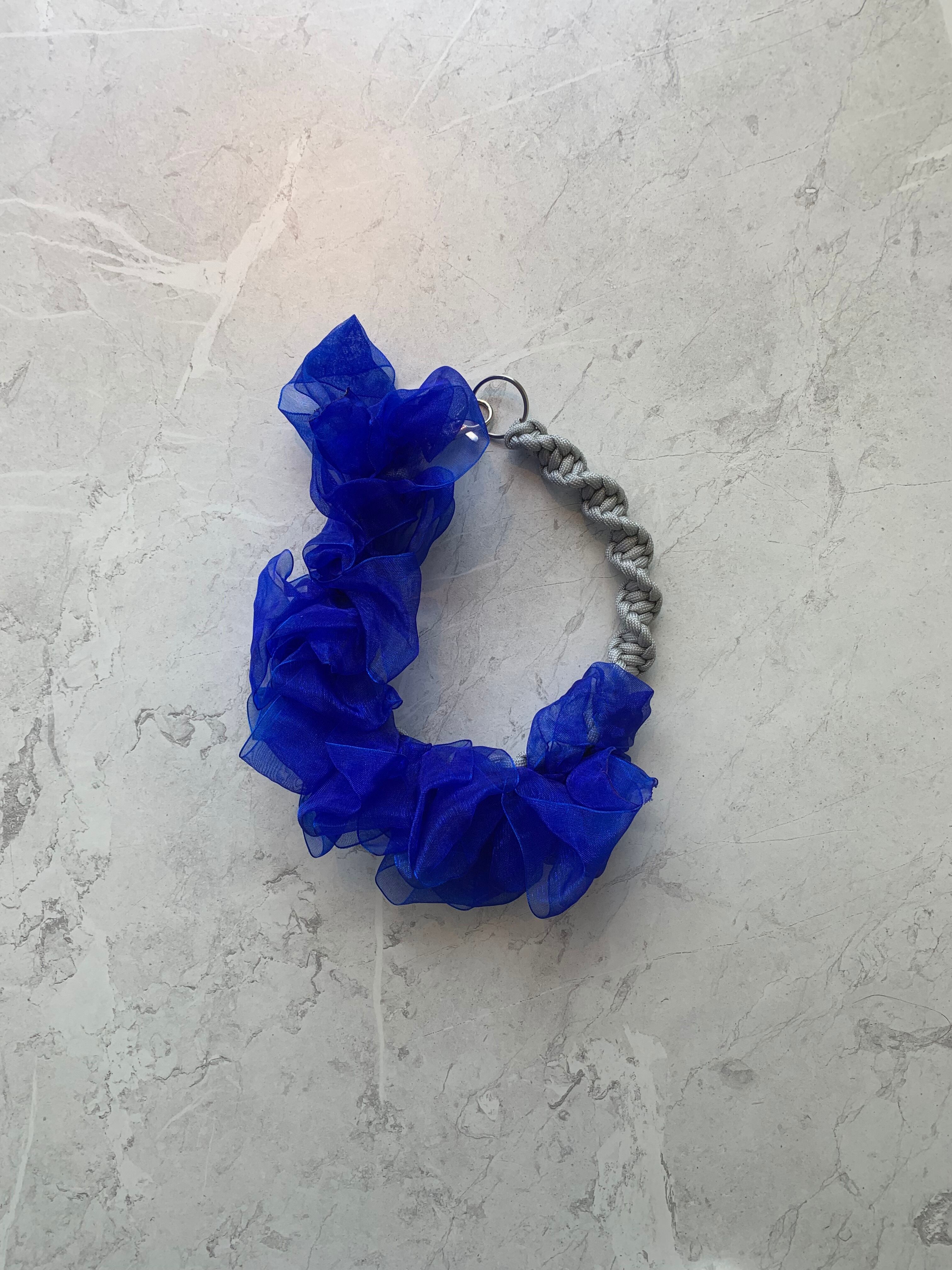 000489---organdy triple shoulder strap + silver ring /light gray + blue [ a te]