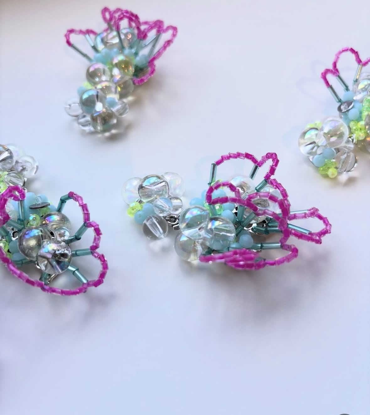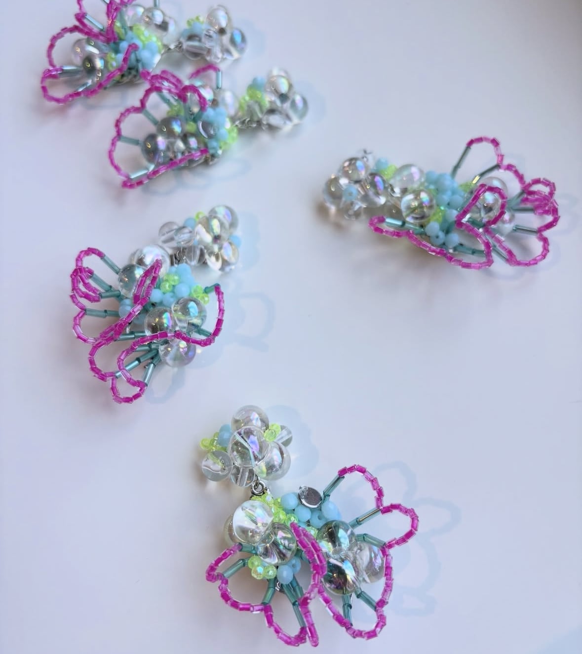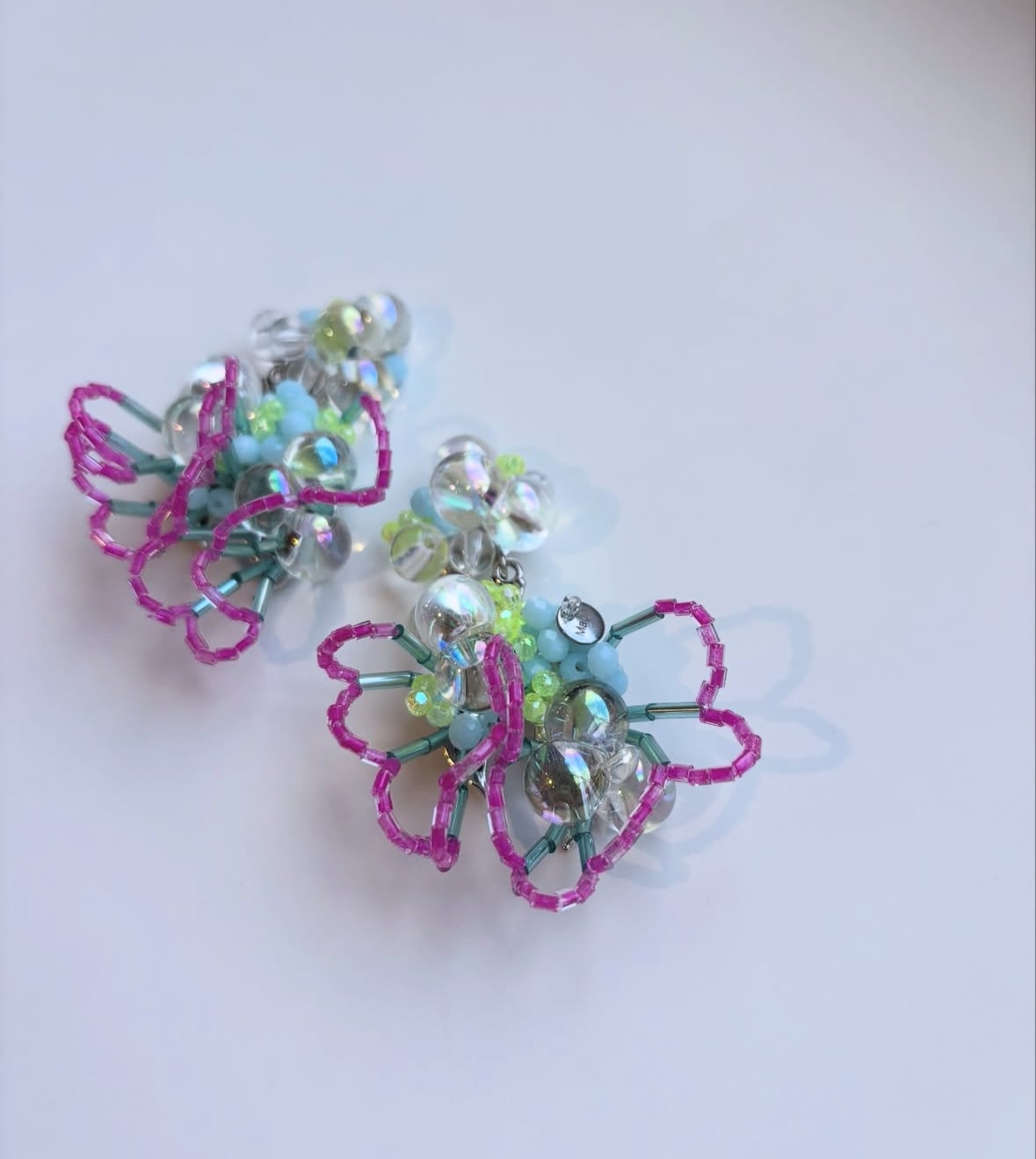 74108—— Adeyaka—— アデヤカ—— ≪フリルビーズピアスイヤリング/pink*green*light blue≫