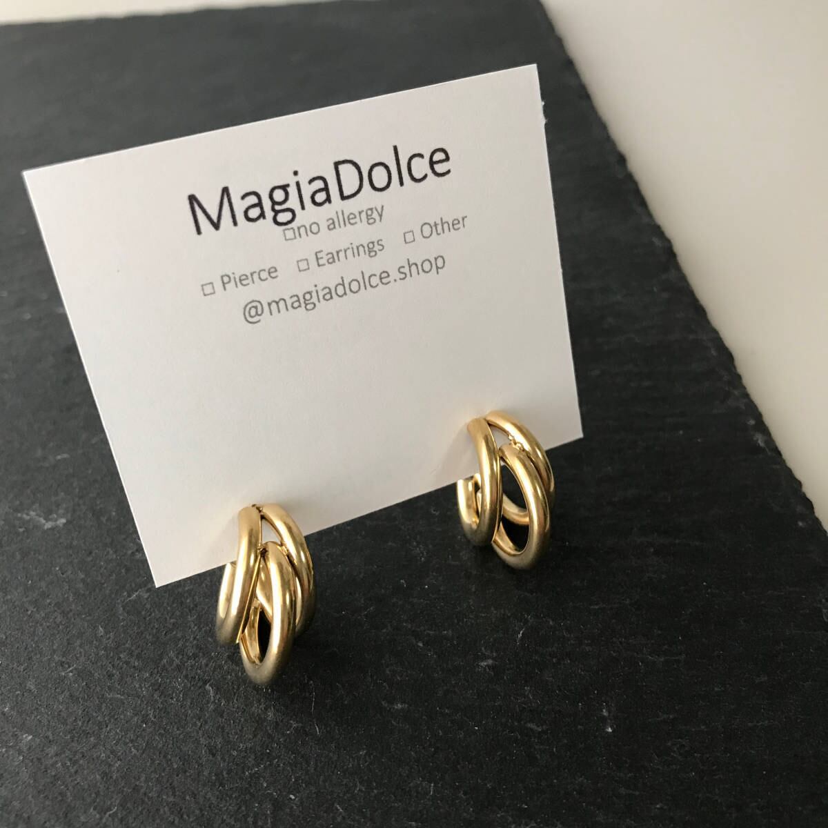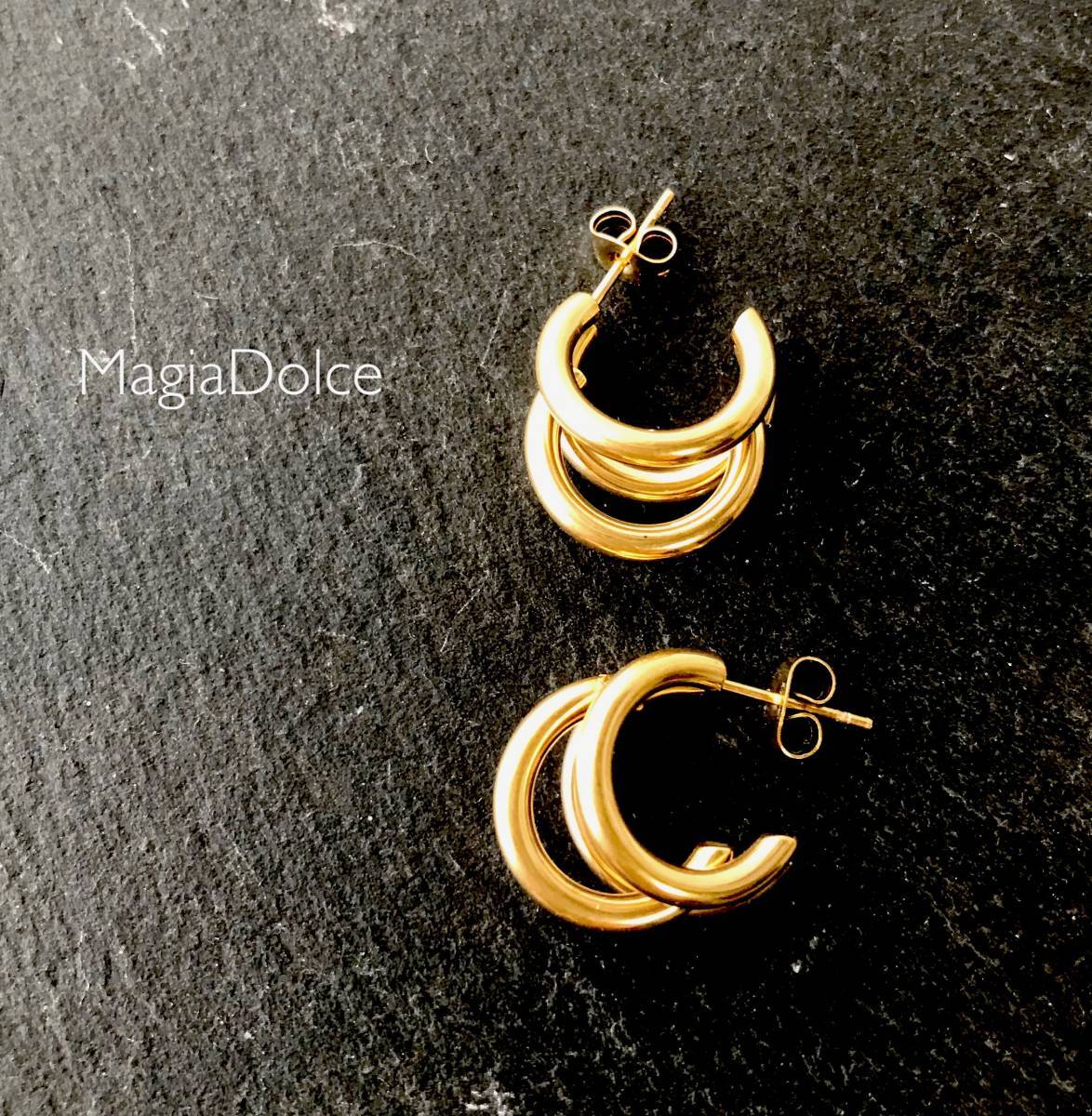 5724◉stainless triple hoop earrings Piercing・gold≪トリプルフープステンレスピアス/ゴールド≫