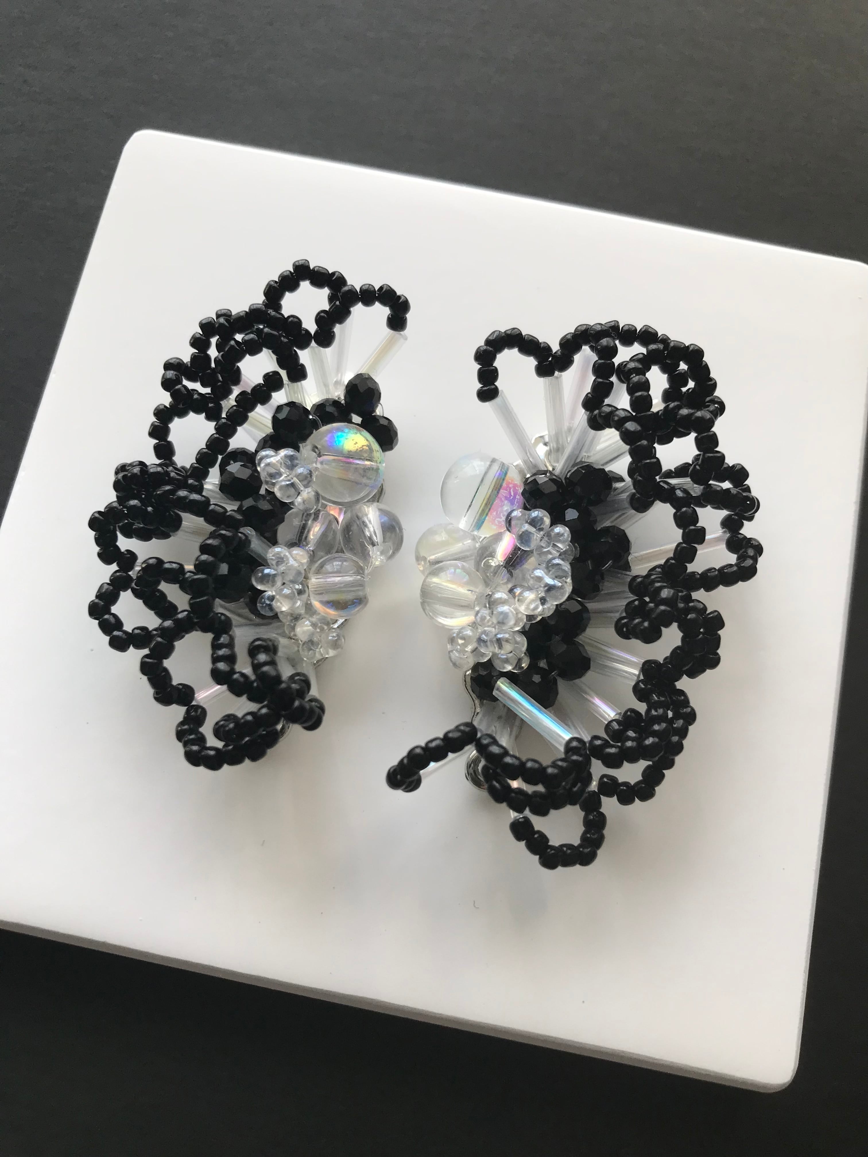 華やかなビーズ使いが魅力のフリルビーズピアスイヤリング。黒いベースにオーロラカラーが輝くデザインは、存在感抜群で周りと差をつけること間違いなしです。シンプルな服装にプラスするだけで、オシャレ度がグッとアップします。 arcana(アルカナ) 毎日のおしゃれを彩り、個性を引き立てます。この特別なピアスイヤリングは、ボリューム感のあるフリルデザインで存在感を放ちながらも、身につけることで女性らしさと可愛らしさを演出します。ビーズの色合いや編み目の美しさ、そして一つひとつ手作業で仕上げた丁寧な作りにより、あなたのおしゃれをより特別なものにしてくれます。 日常の中に彩りを加え、自分らしいスタイルを表現する新しいarcana(アルカナ)のピアスイヤリングで、いつもと違った魅力を演出してみてください。