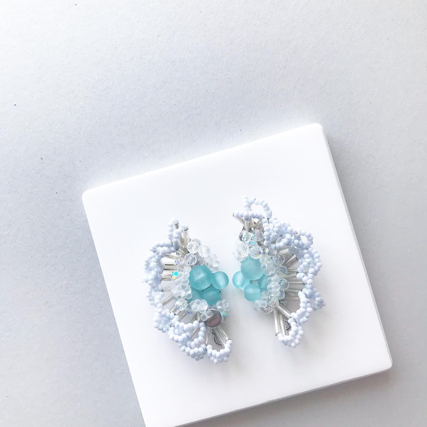 インスパイアされた、美しさと神秘性を象徴するフリルビーズピアスイヤリングが登場。ミルキーライトブルーとシルバーの繊細な色合いがマットなライトブルーと絶妙にマッチし、上品かつ個性的なアクセサリーとしておすすめ。装着するだけで女性らしさを引き立ててくれます。細かいビーズが緻密に編み込まれております。このピアスは、コーディネートのアクセントとして、ひとつひとつに個性があり、特別なアイテムとしてお楽しみいただけます。シンプルでありながらもエレガントな印象を与えるため、普段使いからパーティーシーンまで幅広く活躍します。。フリルデザインとビーズが絶妙に組み合わさった、遊び心満載のアクセサリー。
