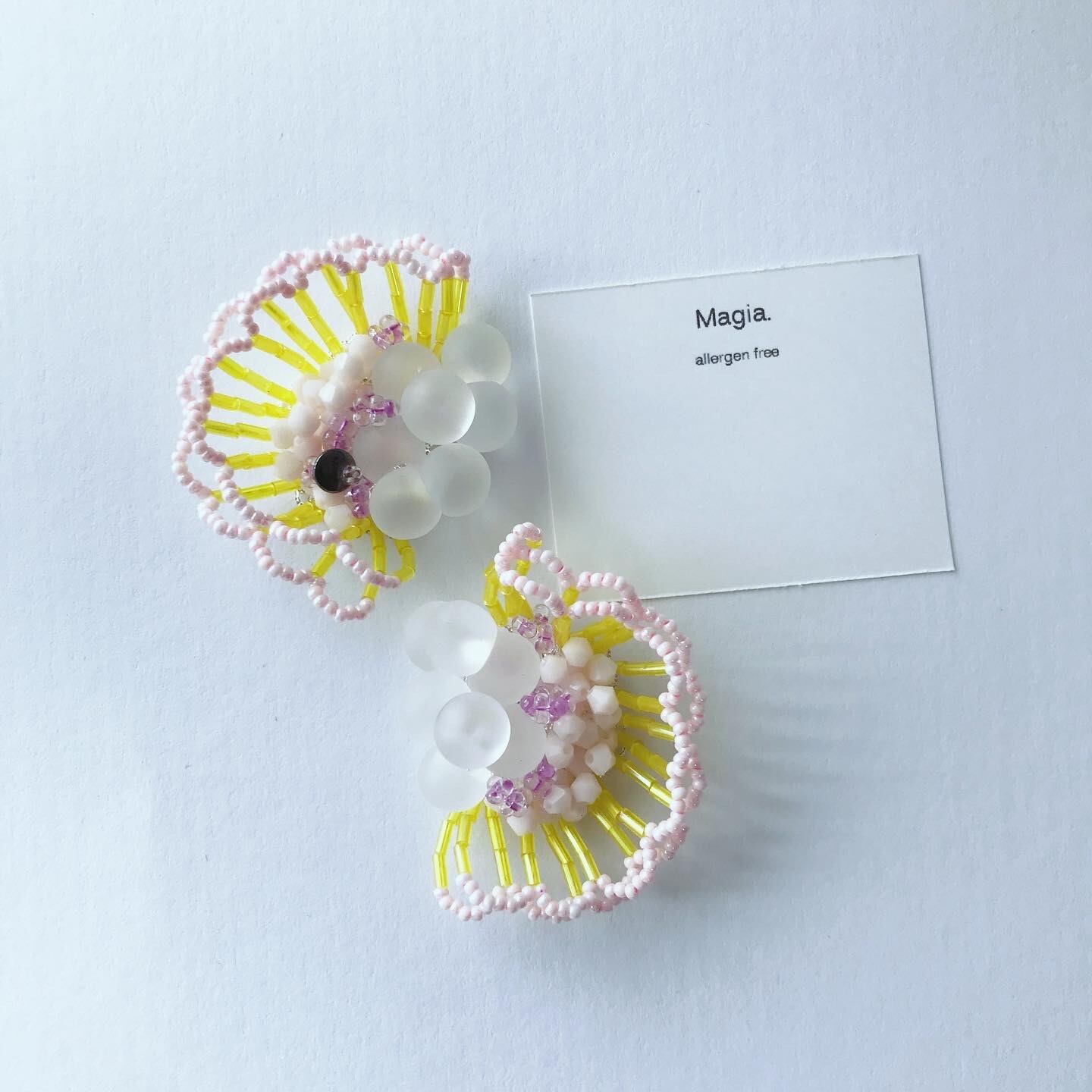 71003—— miwaku—— ミワク—— ≪フリルビーズピアスイヤリング/ミルキーピンク*イエロー
