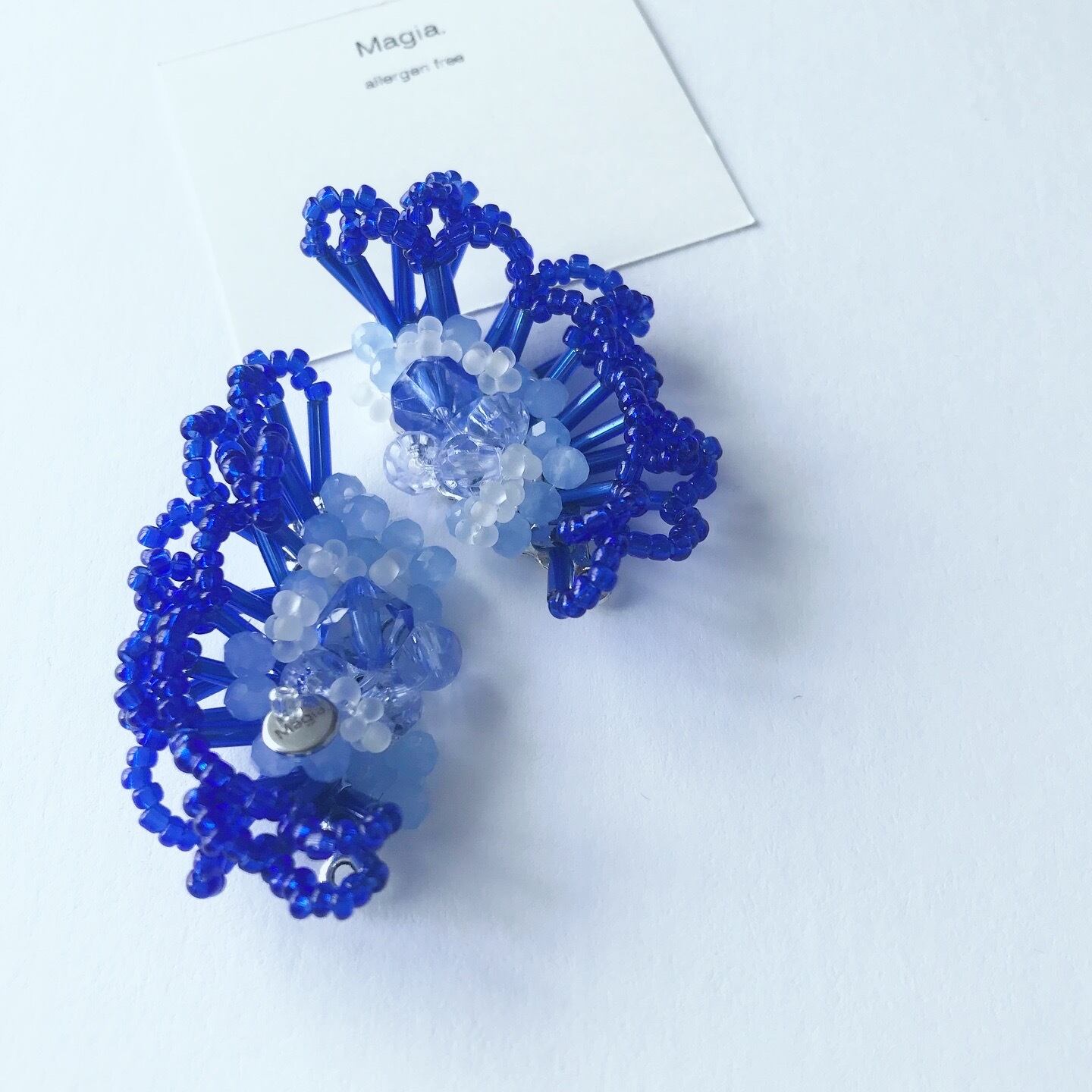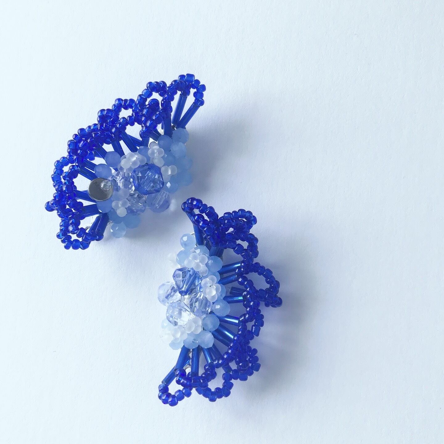 70035——arcana—— アルカナ—— ≪フリルビーズピアスイヤリング/ブルー*ブルー