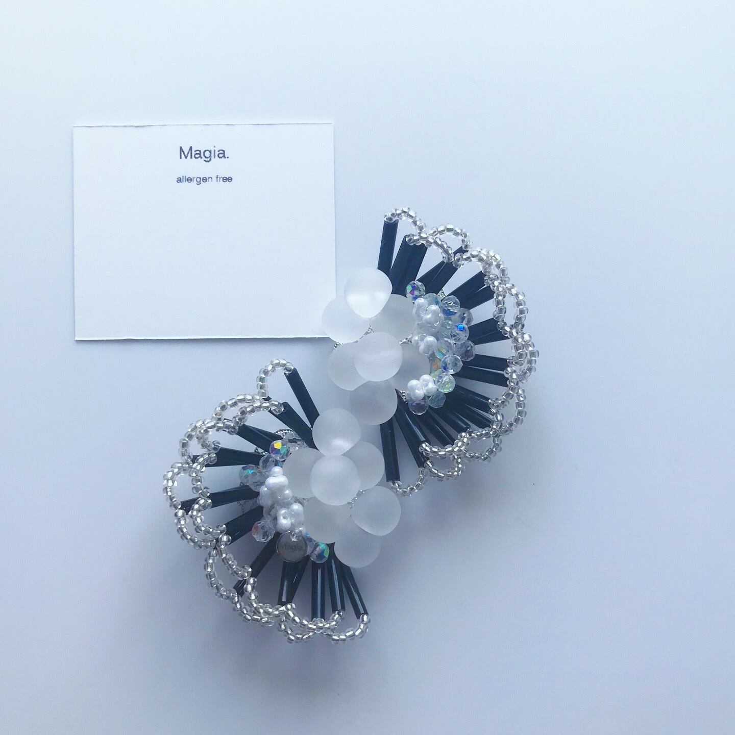 エッジの効いたミニマルなデザインが魅力のmiwaku—— ミワク—— フリルビーズピアスイヤリング。ブラックとオーロラの組み合わせが、モードな雰囲気を演出してくれます。存在感を放ち、おしゃれな装いを引き立ててくれること間違いなし。華奢なフリルと輝くビーズが、耳元を華やかに彩ります。 miwaku(ミワク)がお届けするフリルビーズピアスイヤリングは、小さなビーズと大きなビーズを使った華やかなデザインが特徴。普段使いからパーティーシーンまで幅広く活躍します。フリルデザインとビーズが絶妙に組み合わさった、遊び心満載のアクセサリー。