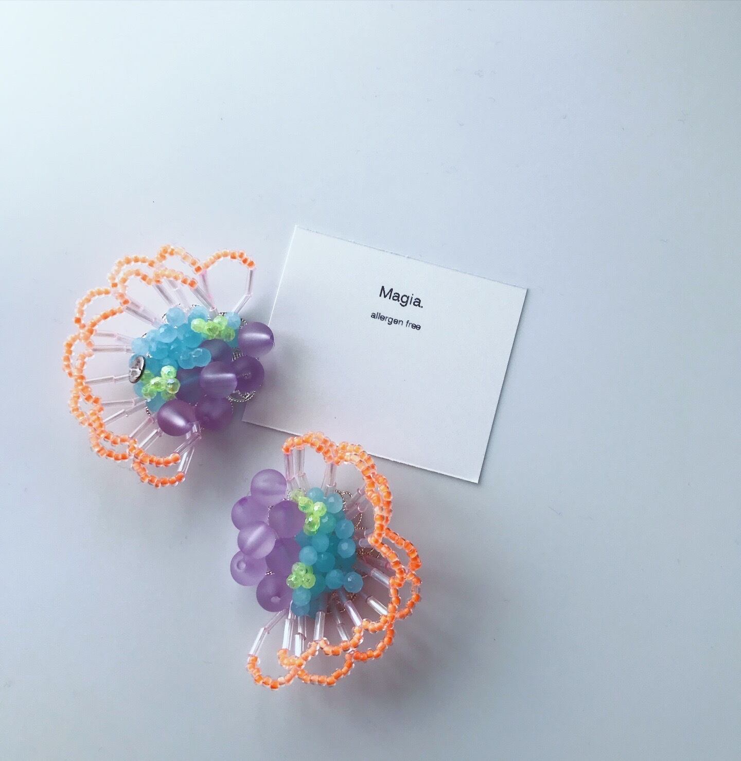 71028——miwaku—— ミワク—— フリルビーズピアスイヤリング——オレンジ*ライトピンク
