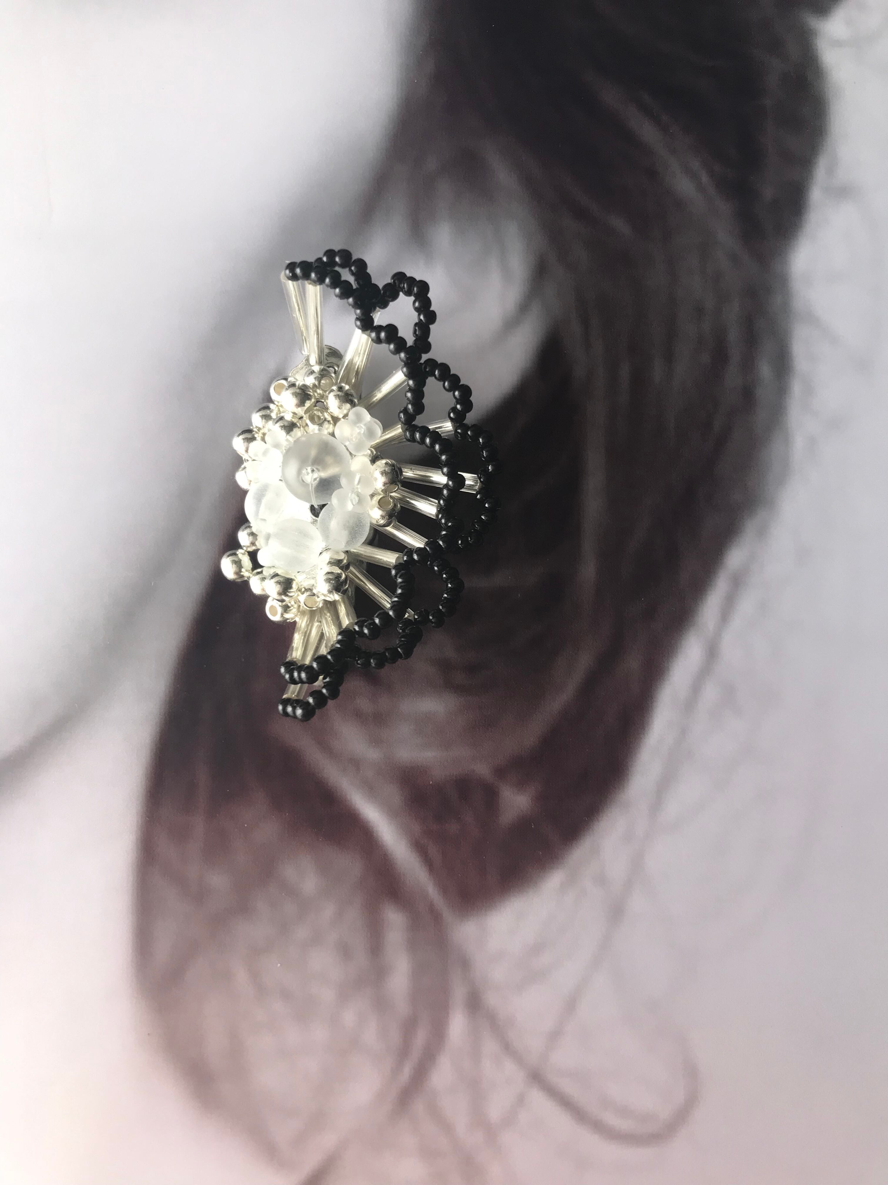 70045——arcana—— アルカナ—— ≪フリルビーズピアスイヤリング/ブラック*シルバー