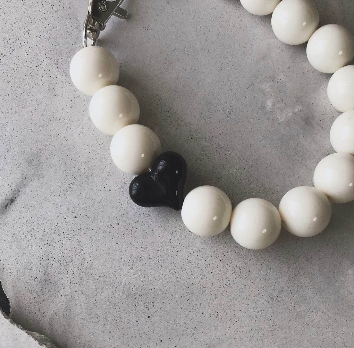 艶感のあるビーズにハートのワンポイントが施された特別なハンドストラップ。シンプルなデザインながら、存在感があり、手元に華やかさをプラスしてくれます。日常使いはもちろん、特別な日のお洒落にもぴったりのアイテムです。