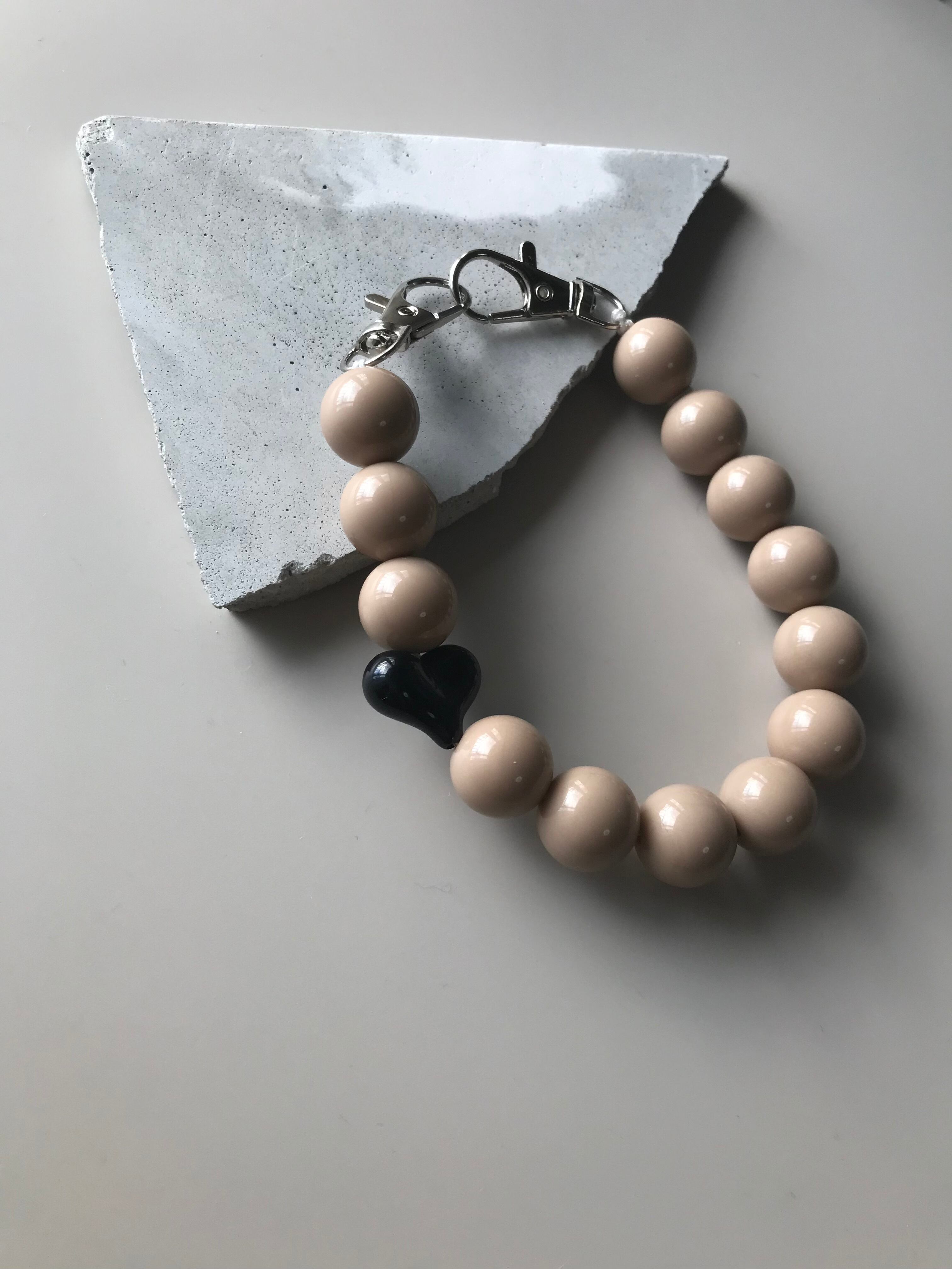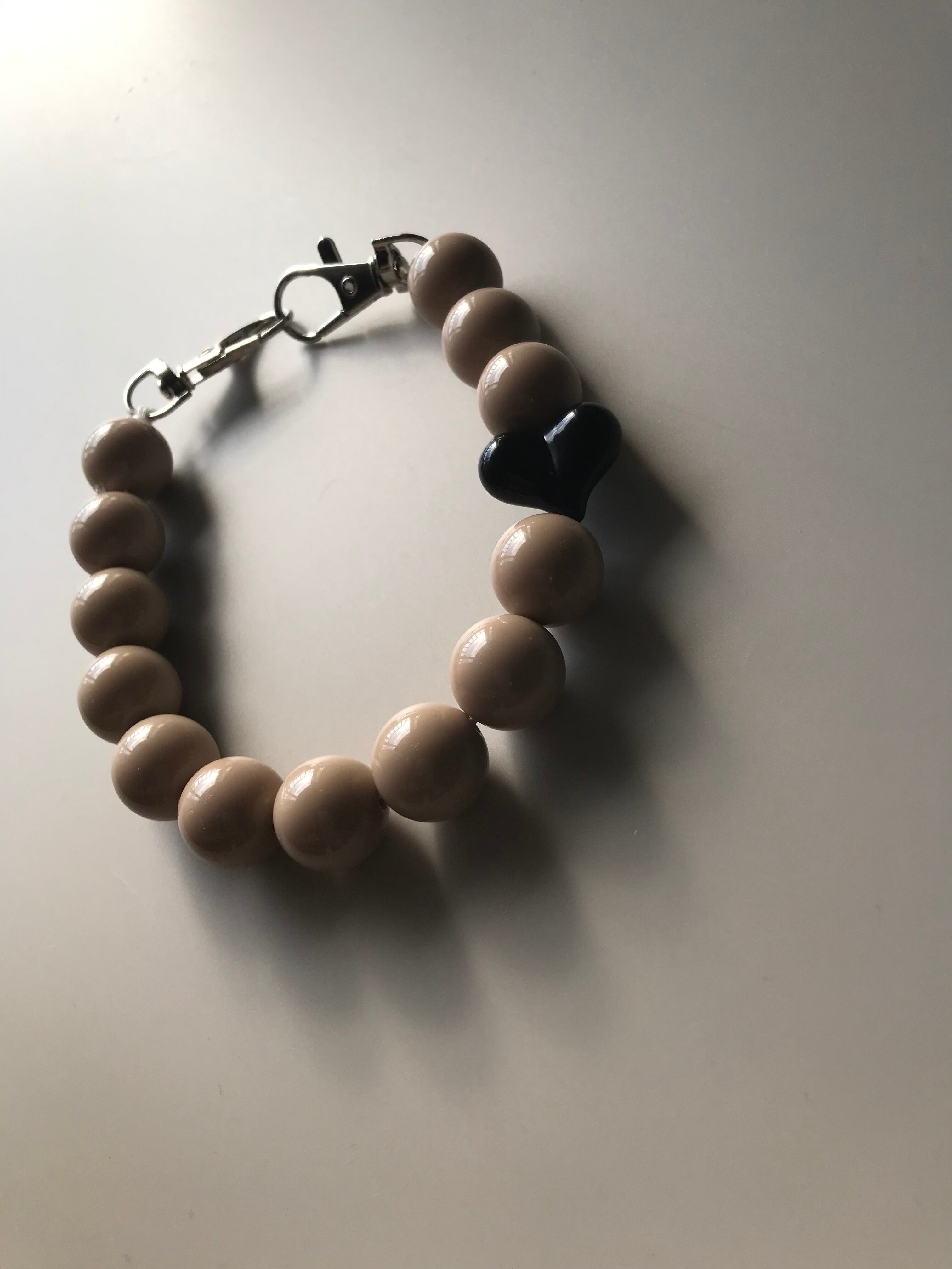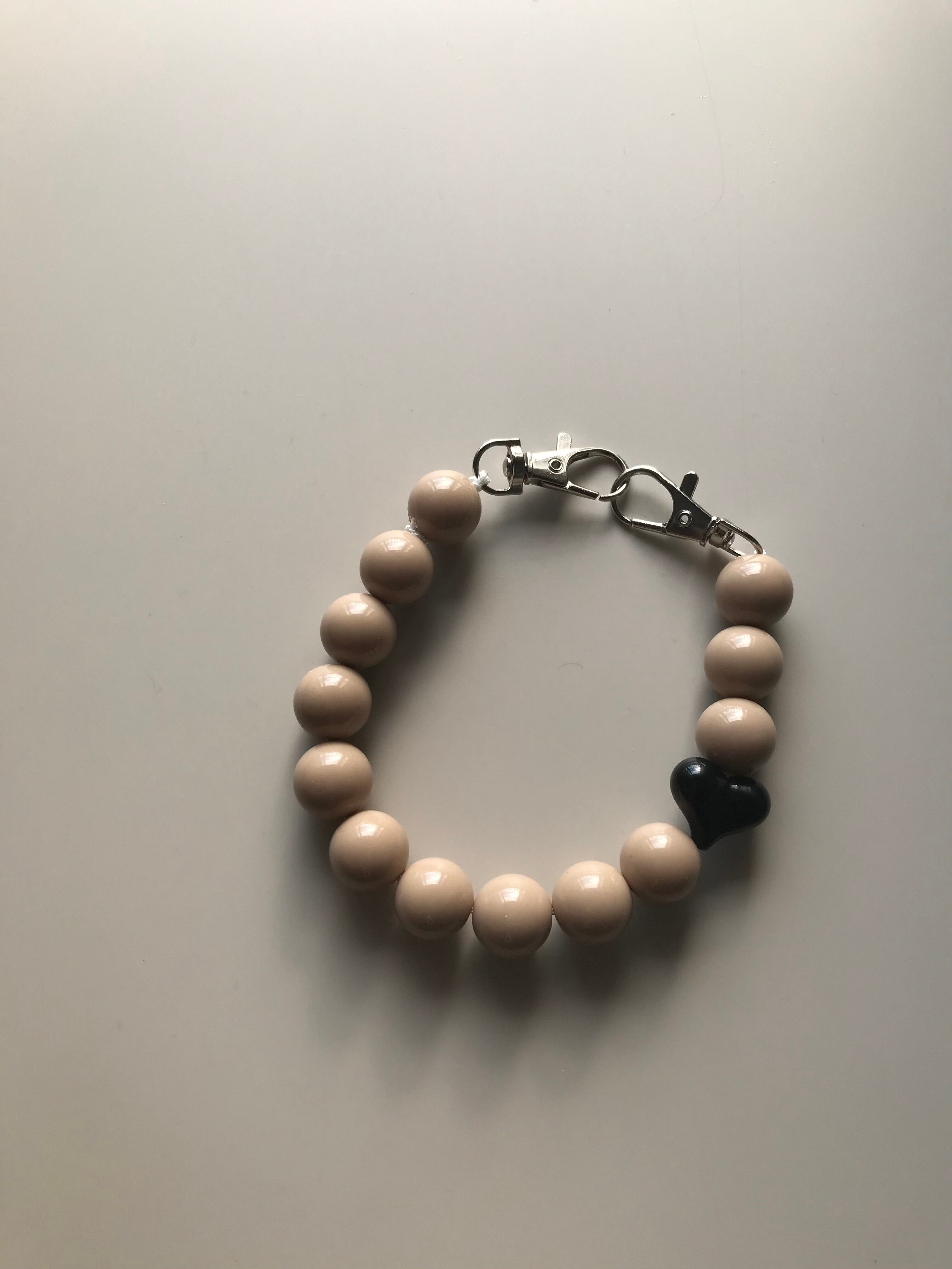 艶感のあるビーズにハートのワンポイントが施された特別なハンドストラップ。シンプルなデザインながら、存在感があり、手元に華やかさをプラスしてくれます。日常使いはもちろん、特別な日のお洒落にもぴったりのアイテムです。